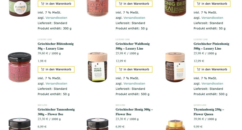 WordPress-Website HONEYBEEHONEY mit integriertem Onlineshop
